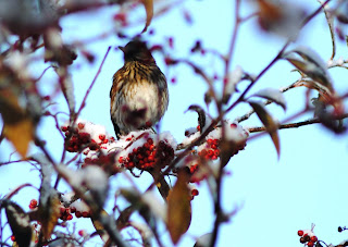 Lots of activity in the Loughor berry trees with Redwing (Turdus iliacus) and Blackbird (Turdus merula) both scoffing.